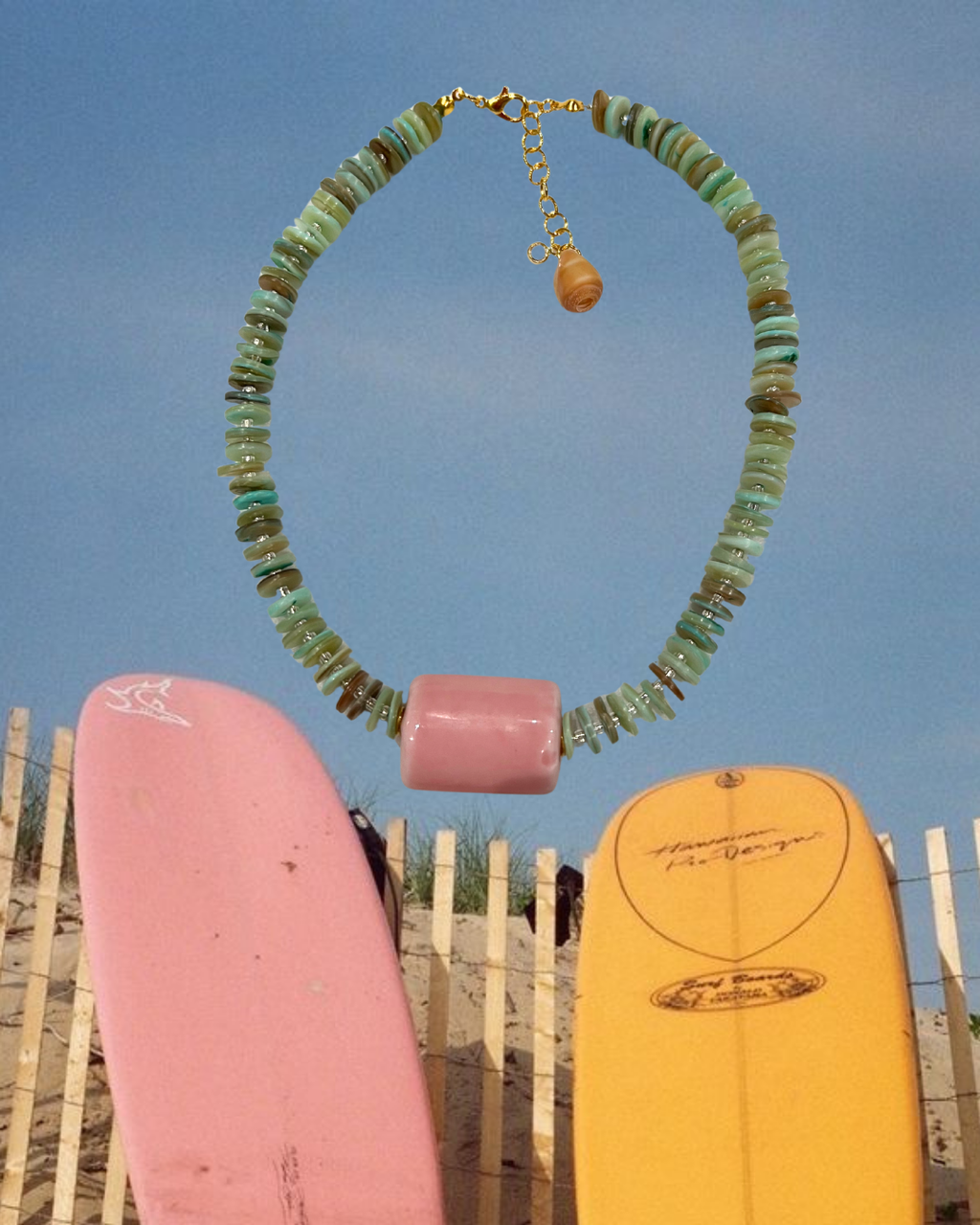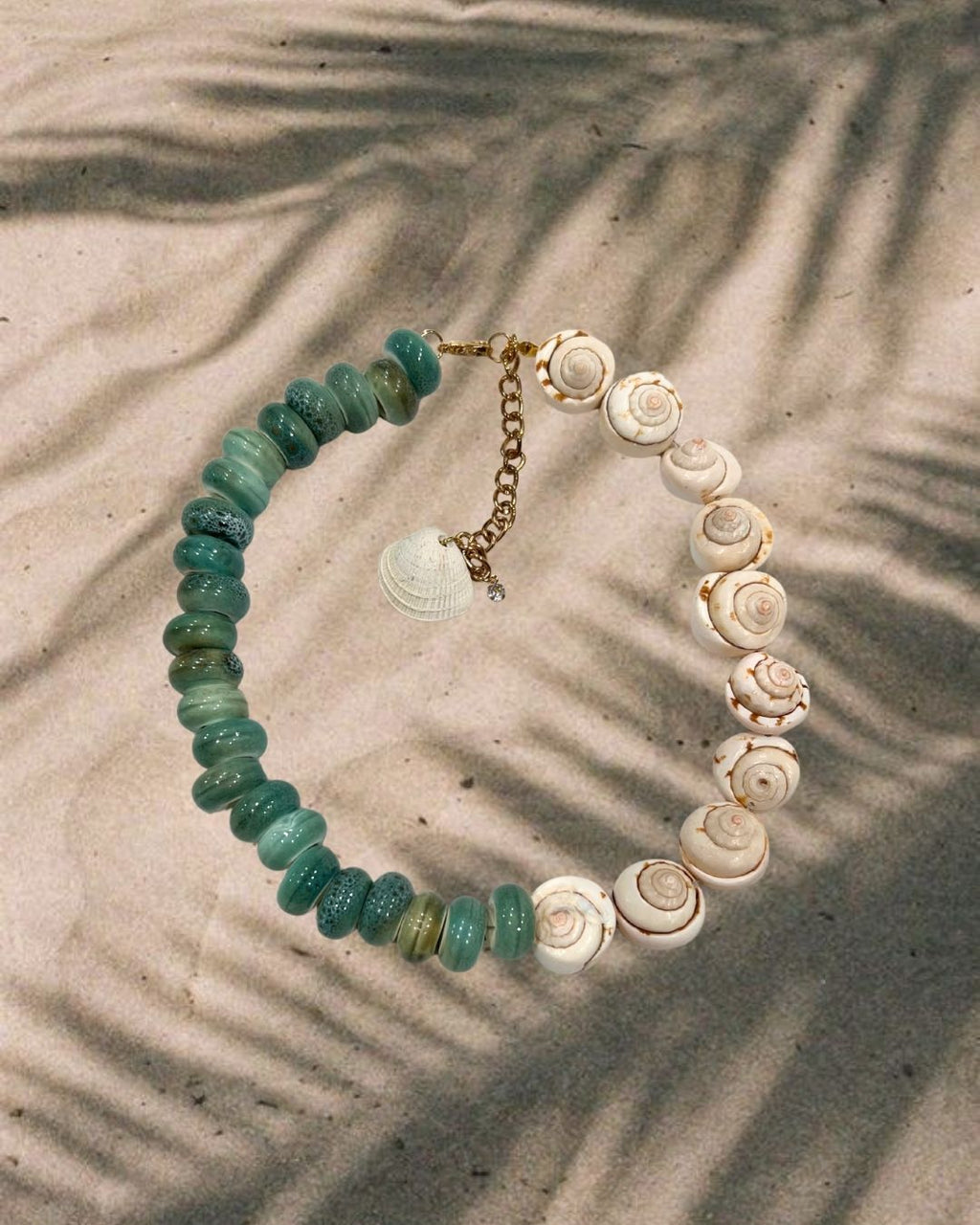 All necklaces are handmade and one of a kind, no two necklaces are the same. We use only gold plated pieces so that your necklaces are tarnish free and can be worn at the ocean or in your hot pilates class.