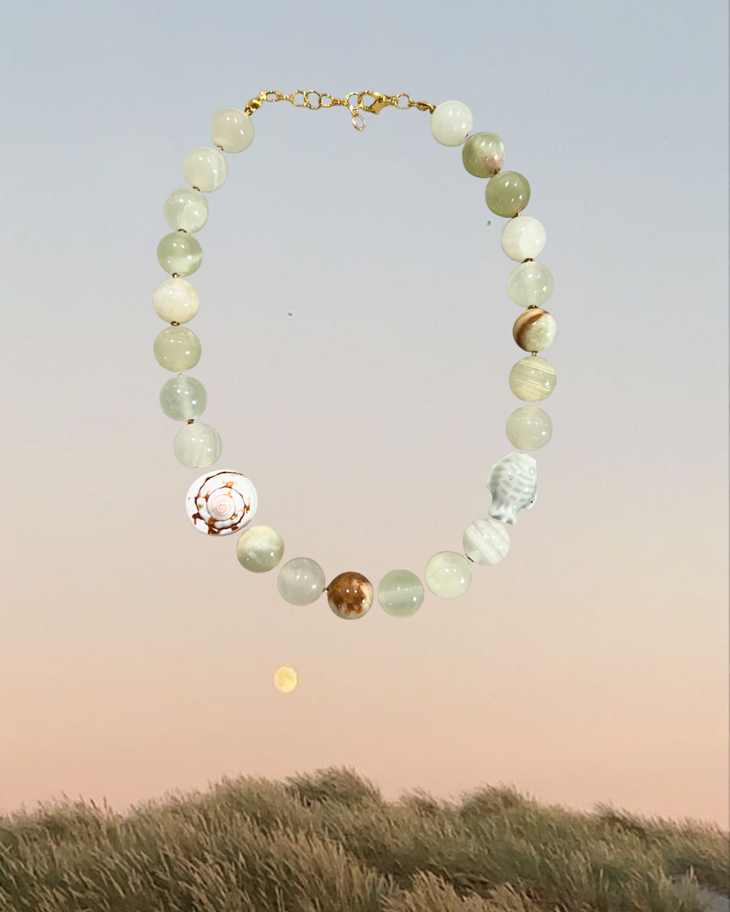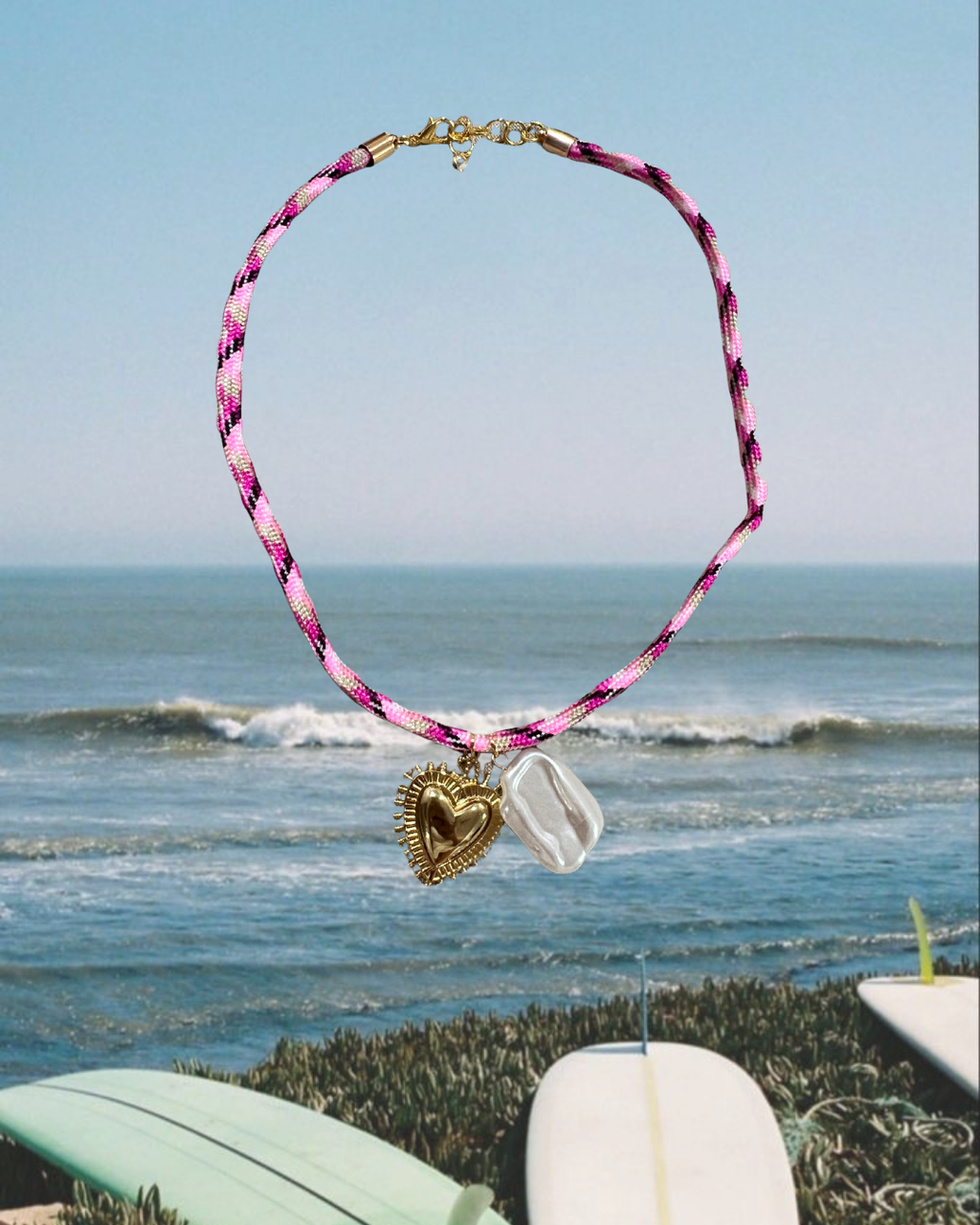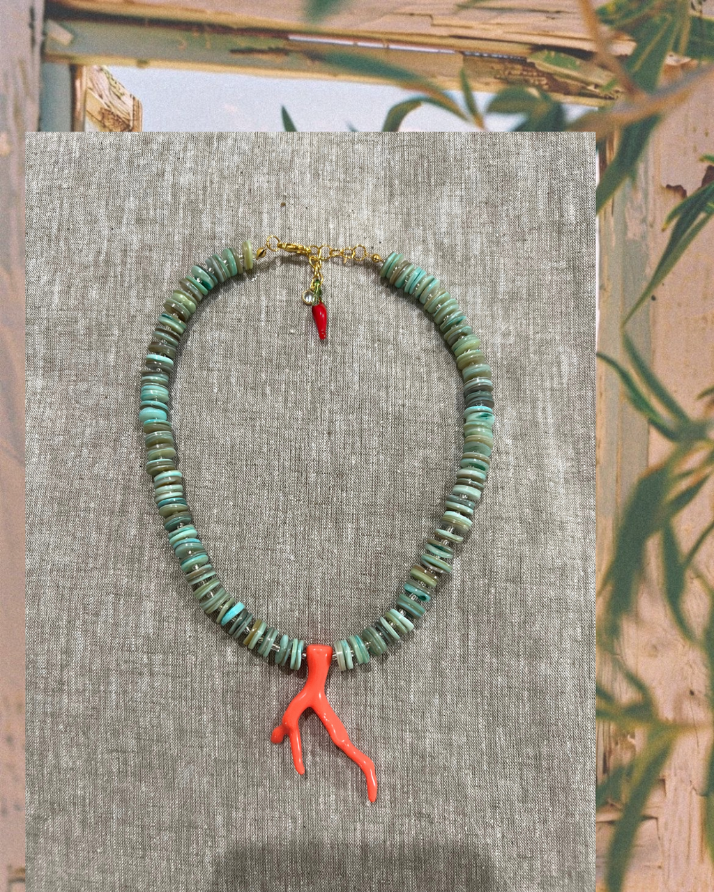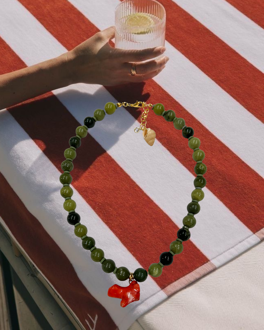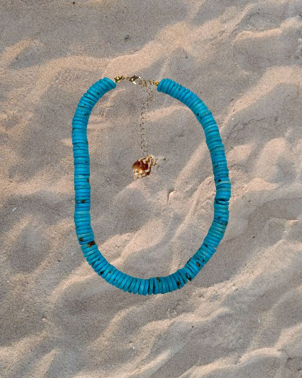 All necklaces are handmade and one of a kind, no two necklaces are the same. We use only gold plated pieces so that your necklaces are tarnish free and can be worn at the ocean or in your hot pilates class.